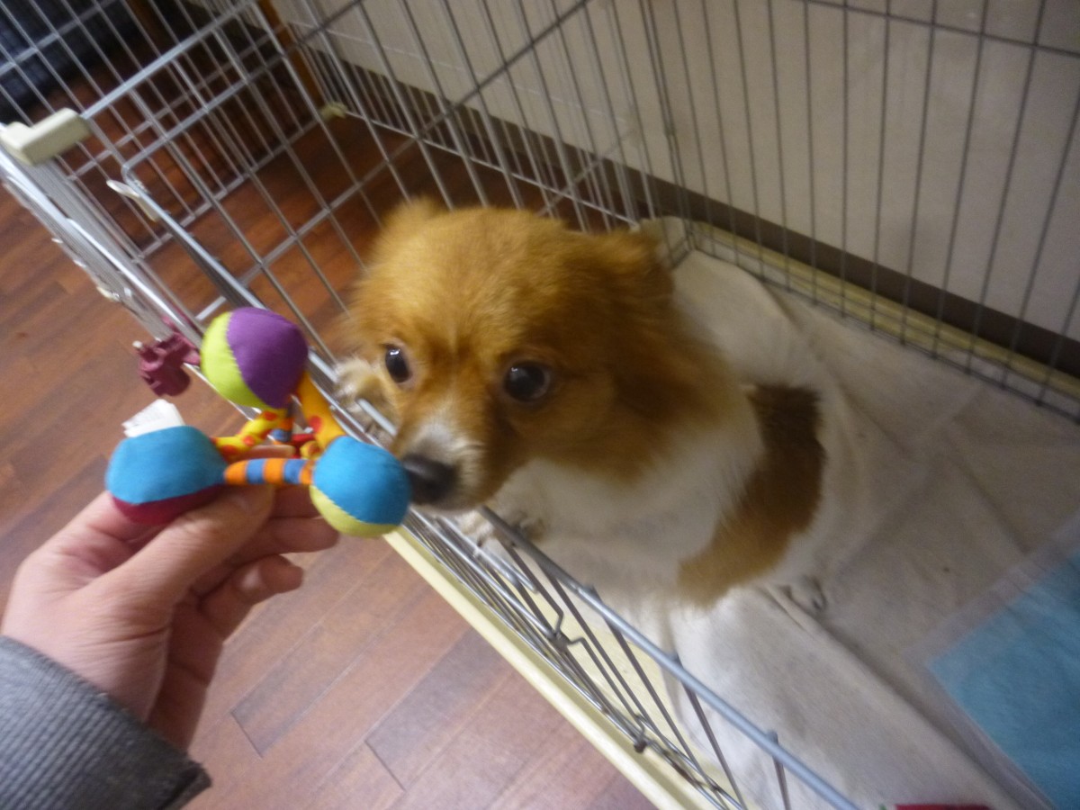 おもちゃを見せると興味津々にクンクン♪♪