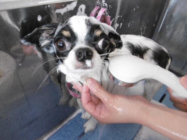 シャンプー中、お鼻に泡がついた