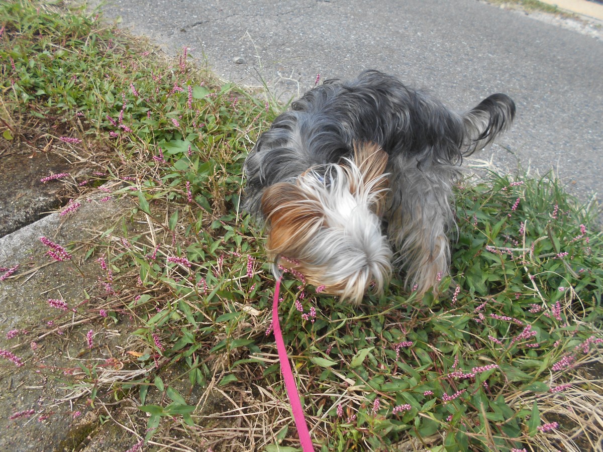 草のところをクンクン匂いかいだり