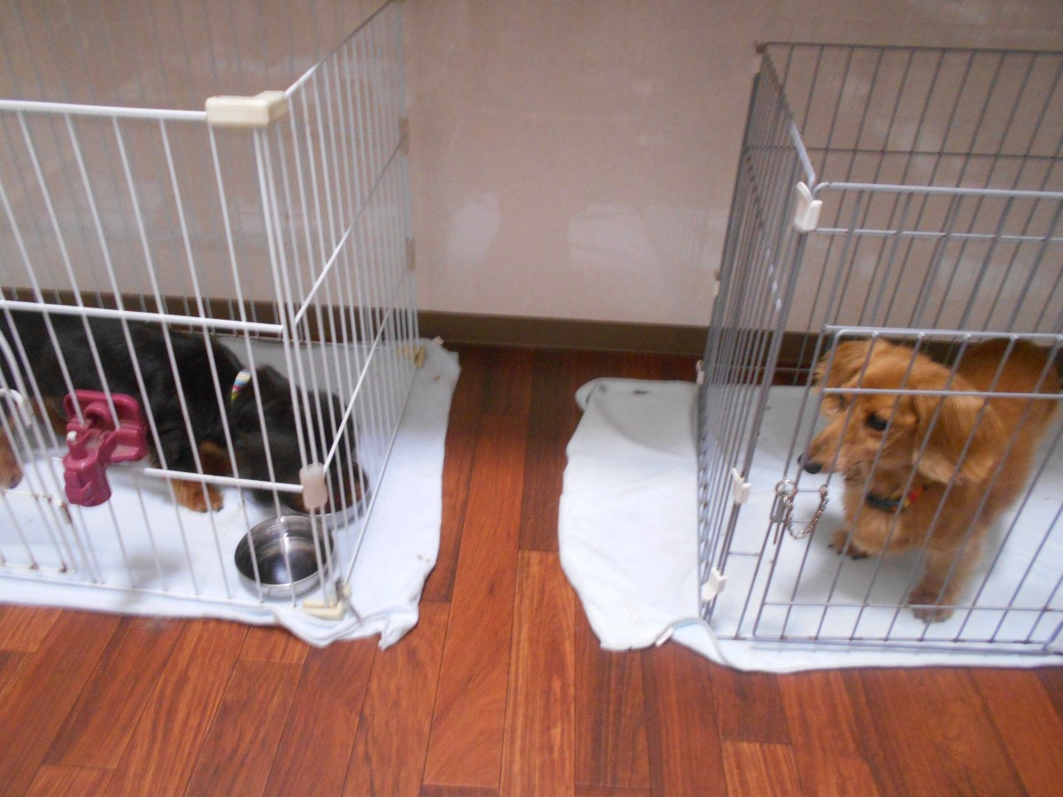 隣同士のゲージでお泊り中も寂しく