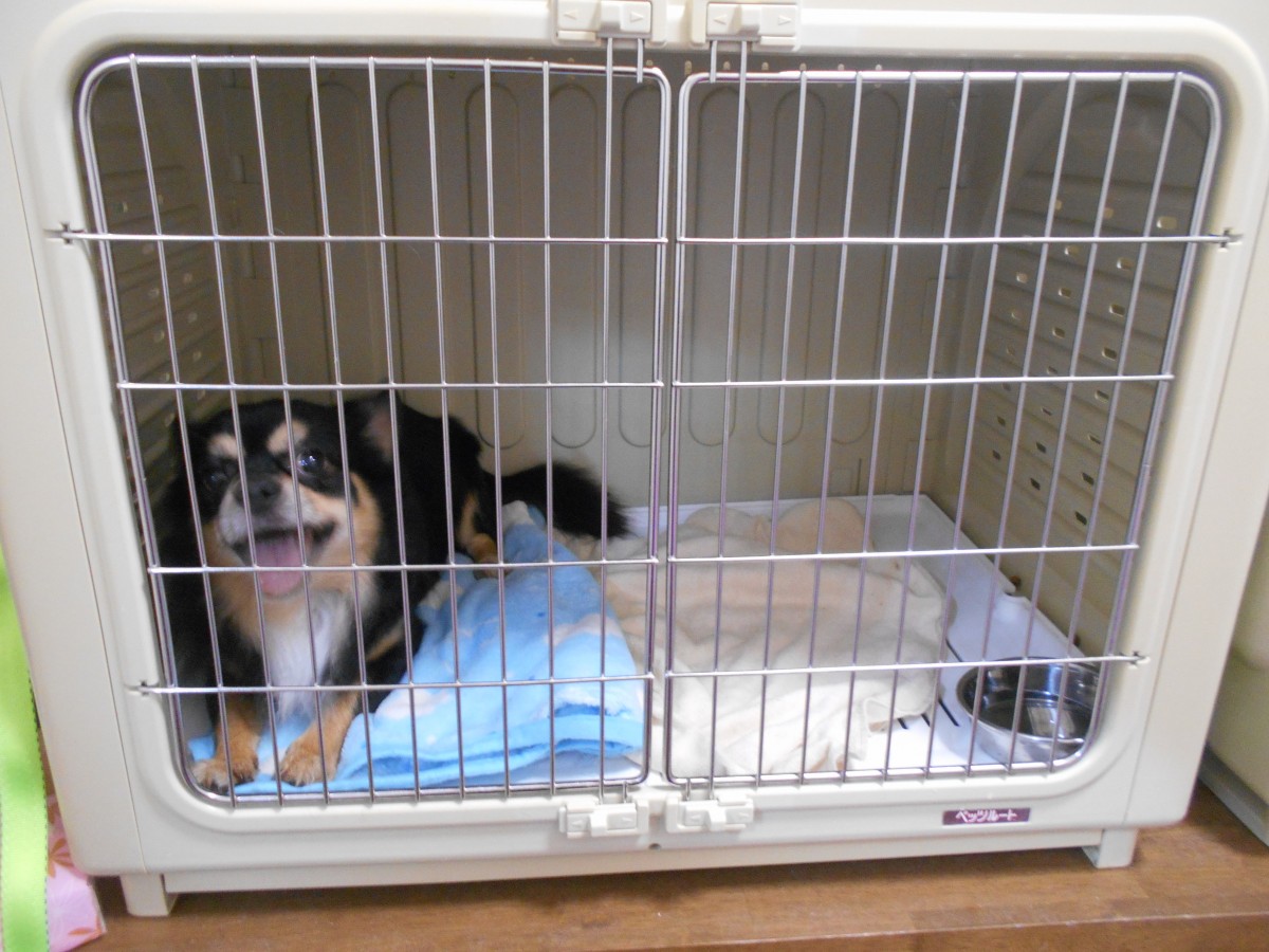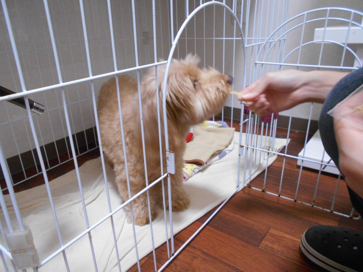 ゲージから出してあげるとスタッフの足元に