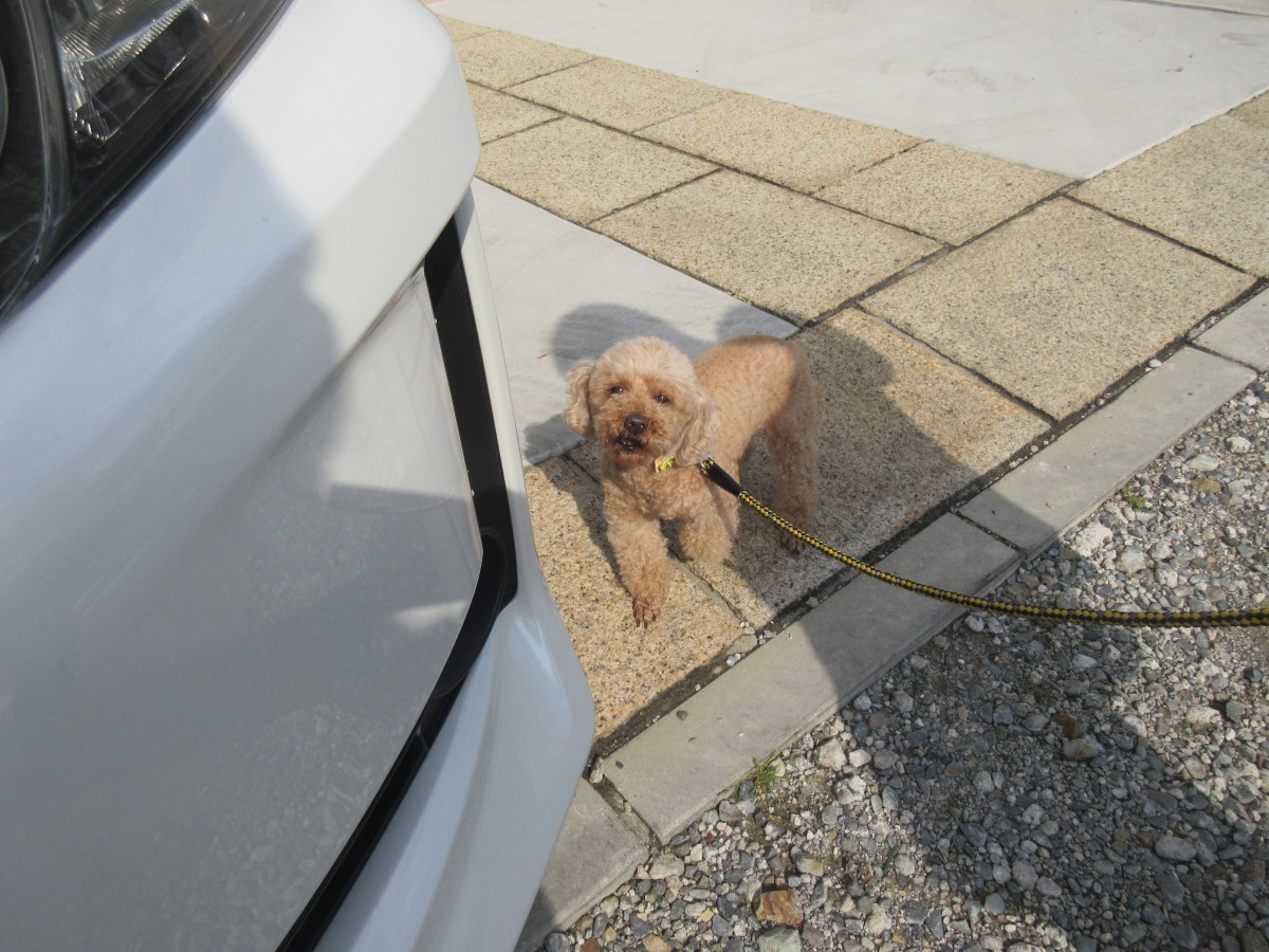 お散歩へ行くと毎回スタッフの車の元へ