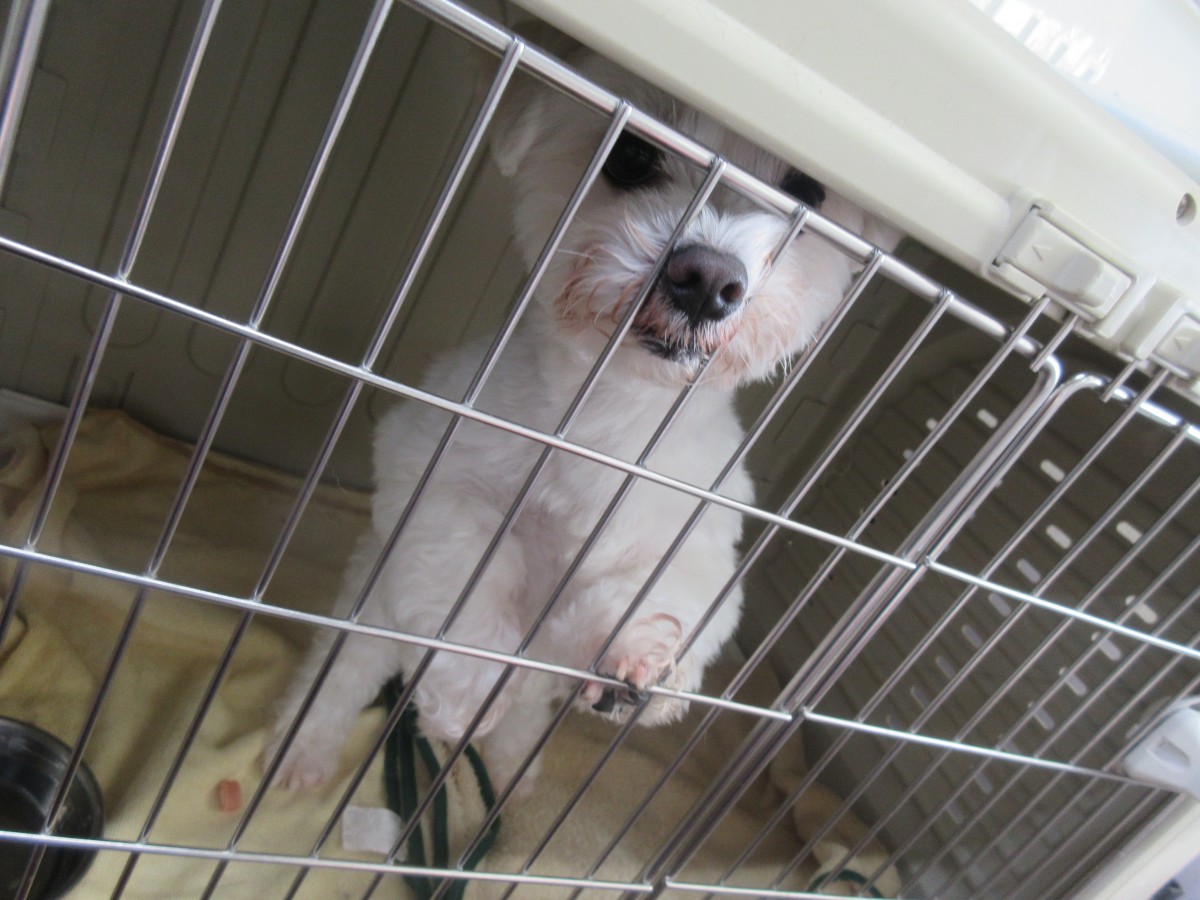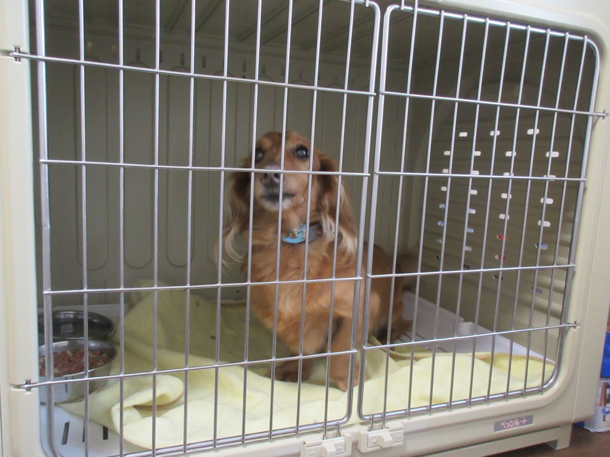 ケージの中で休んでもらい、