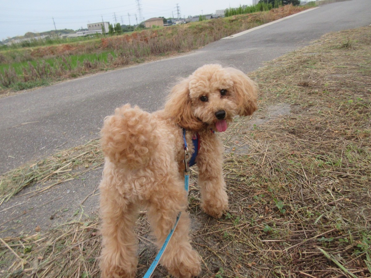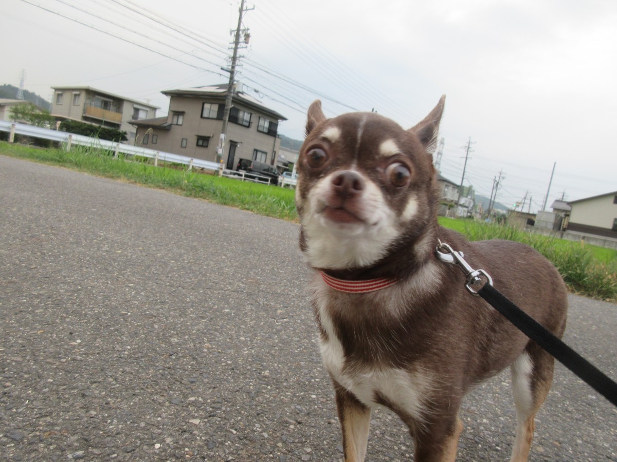 お散歩もしっぽを丸めて