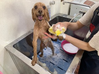 今日はお迎え前にシャンプーです^^