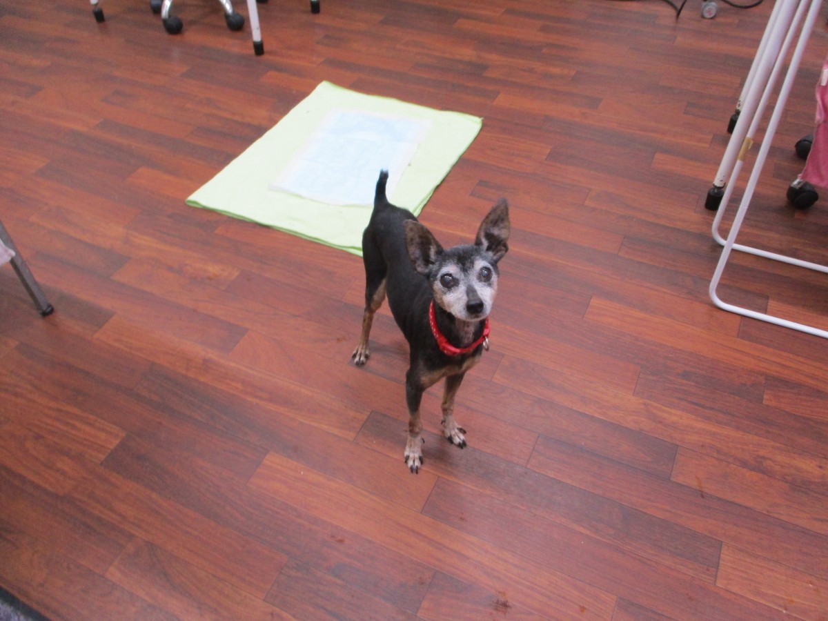 スタッフがそばに行くと上目遣いで