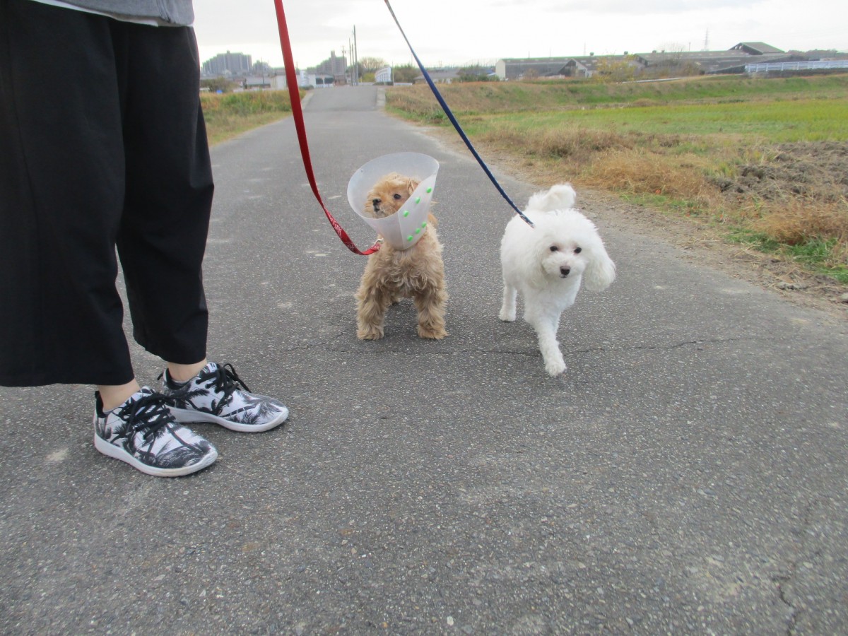 リードがわちゃわちゃになりながらお散歩を