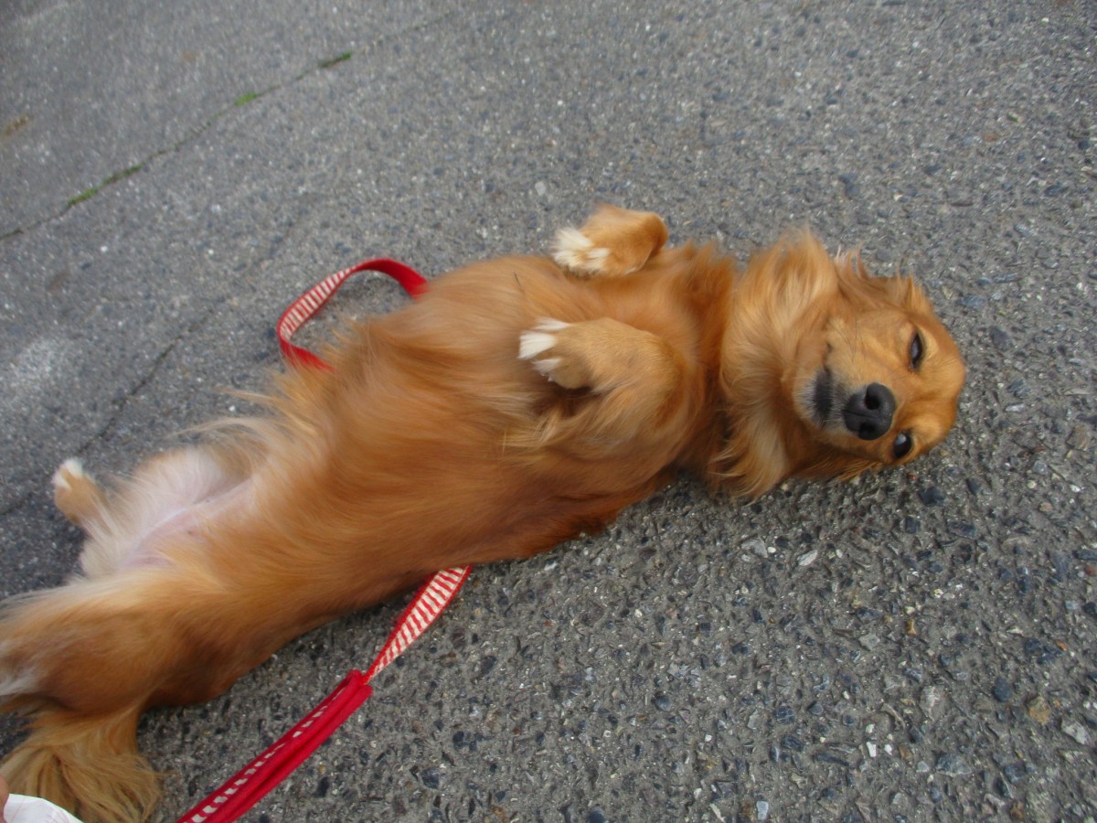 目を細めて尻尾ぶんぶん匍匐前進で