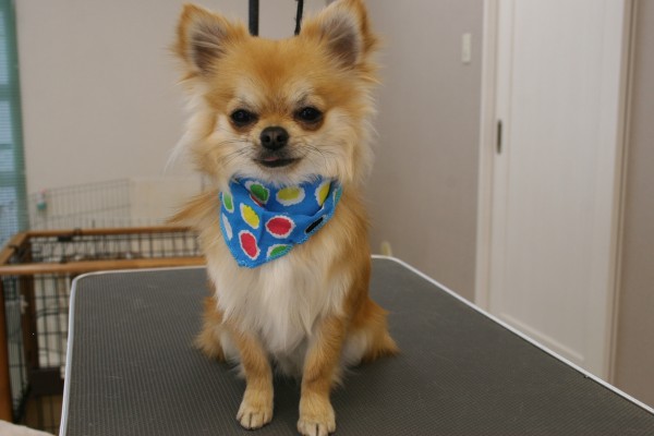 シャンプーしてお尻やお腹の長い毛をカットしました^^