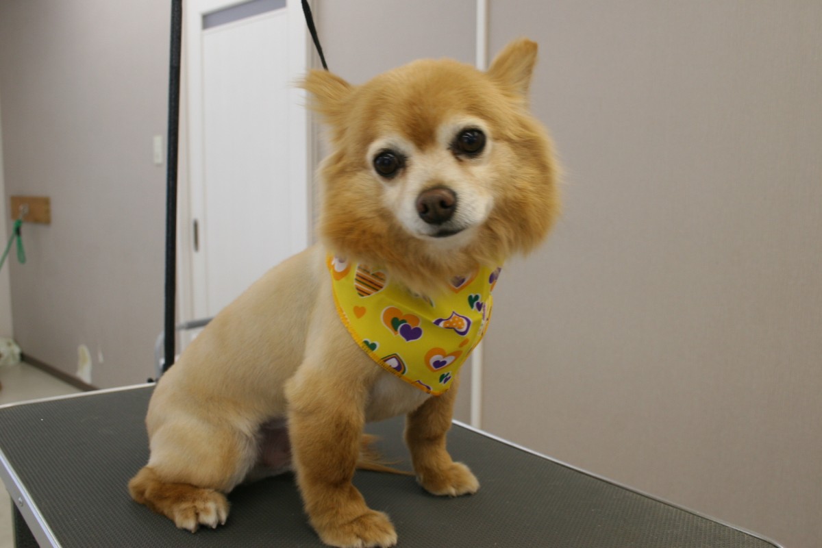 バリカンで全身短くカットしました^^チャームポイントのお耳は残しました^^